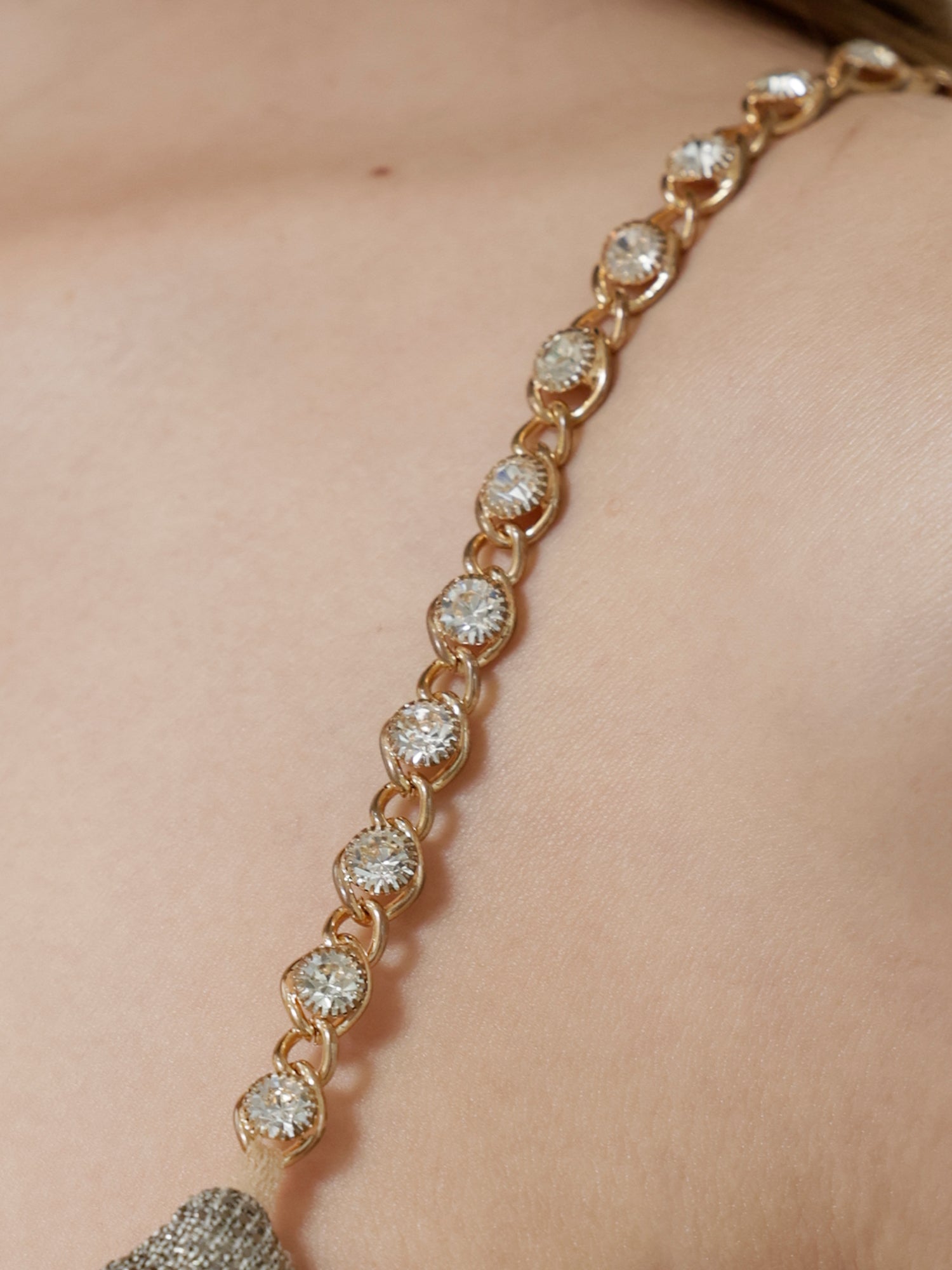 肩のチェーンストラップが上品なアクセントとなり、華やかな印象をプラス。