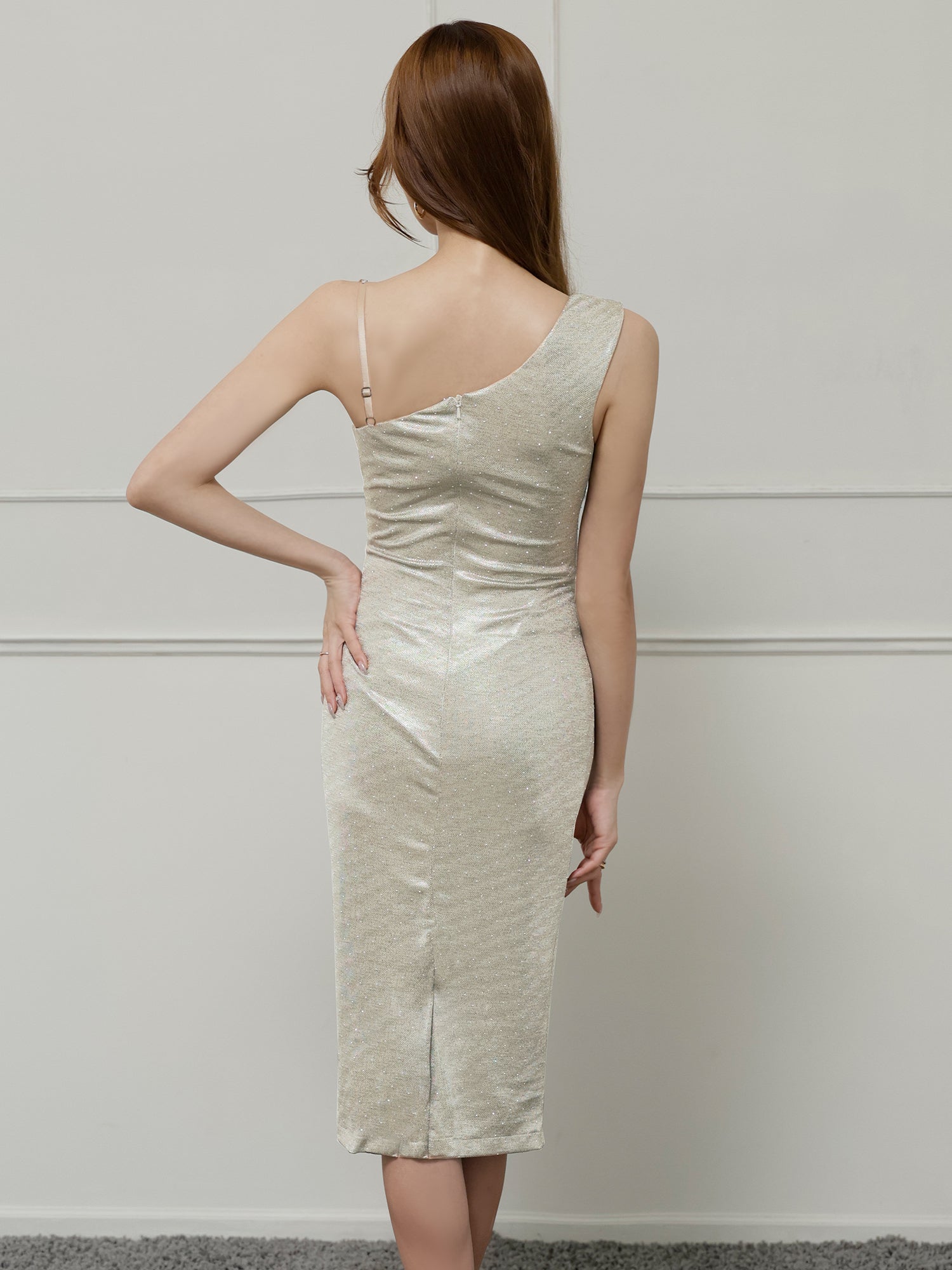 アシンメトリーショルダー/スタッズ/ミディアムドレス