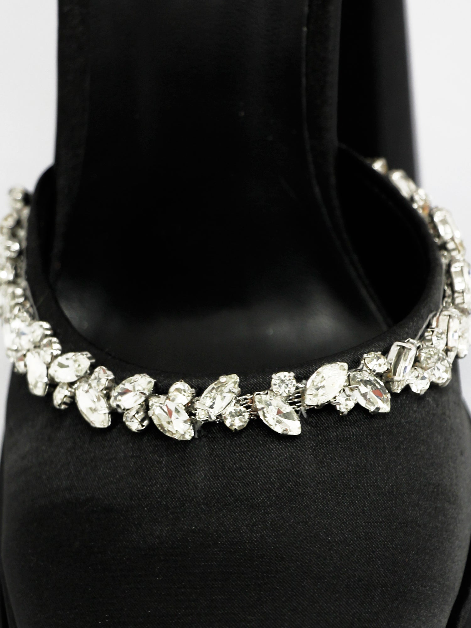 These high heel pumps are decorated with jewels all over the body, adding a glamorous touch to your feet.