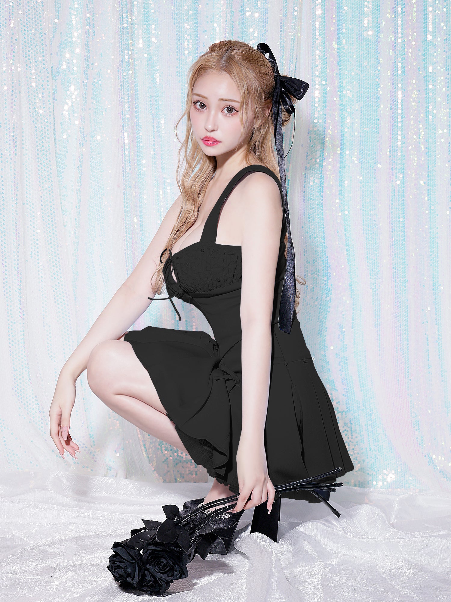 バストカットデザイン/リボン/チュール/ビジュー/フレア/セパレート/マイクロミニドレス