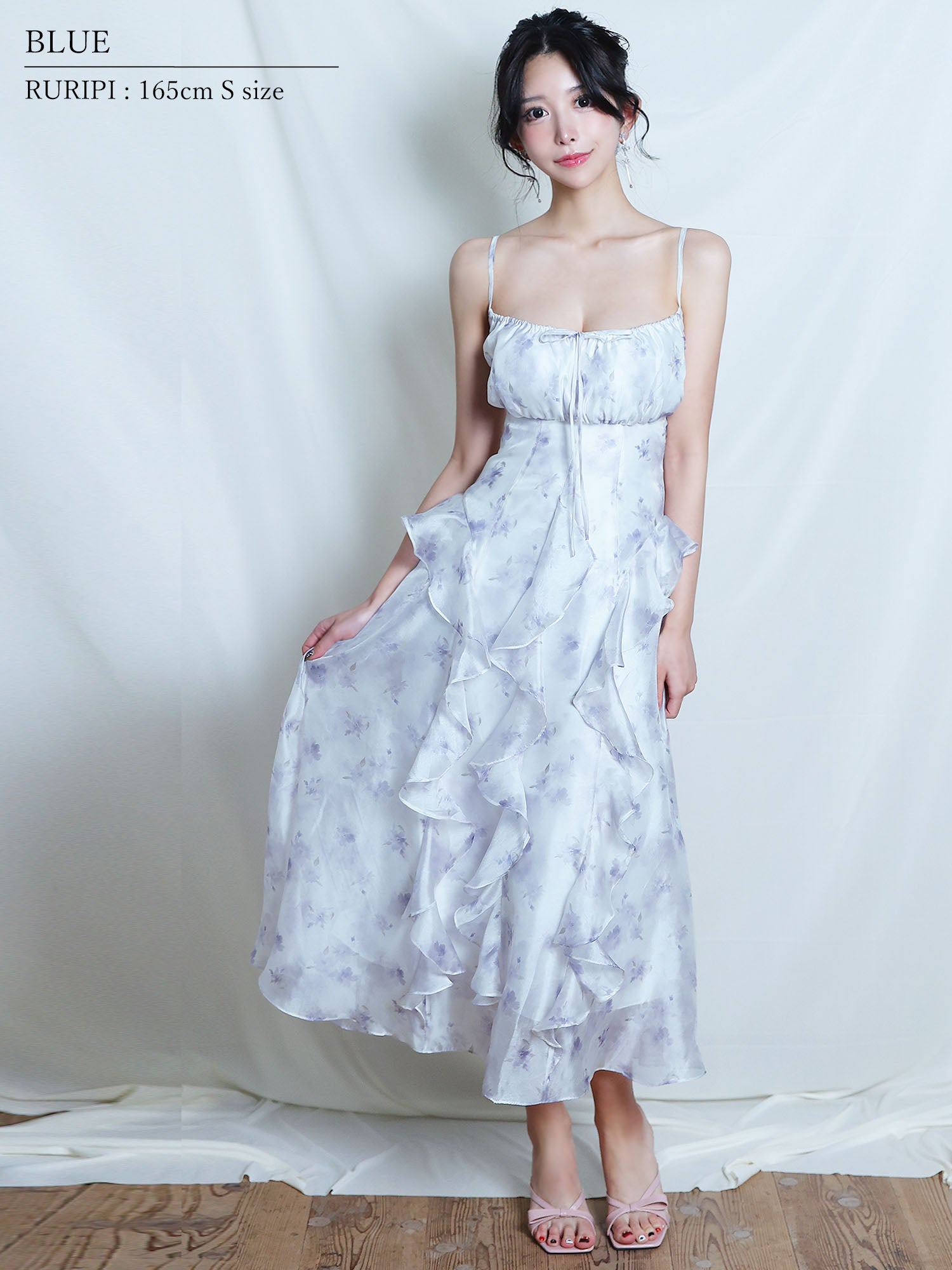 フラワーデザイン/バストリボン/フリル/フレア/シフォン/ロングドレス
