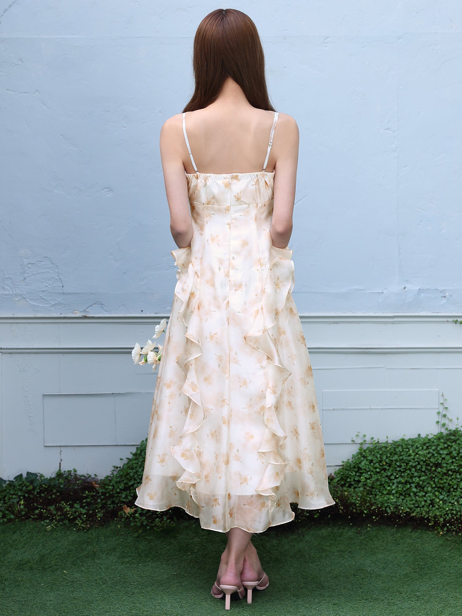 繊細な花柄プリントを全面に施し、今季トレンドをしっかり押さえたロングドレス。